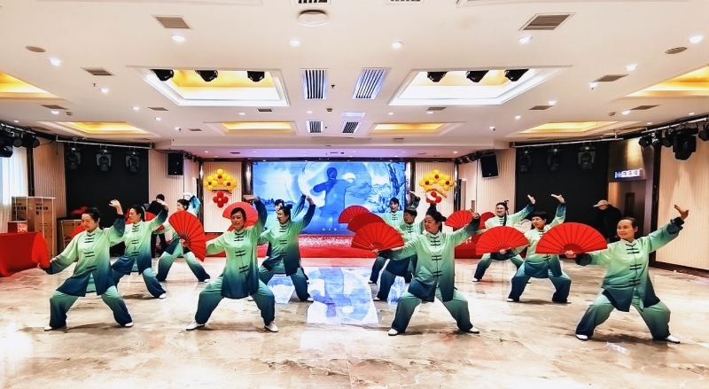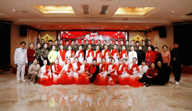 随后,联欢会进入了精彩纷呈的节目表演环节,十四个精心准备的节目依次上演。每一个节目都独具特色,原创歌曲大合唱《复兴路上大步走》《幸福资阳我的家》歌声激昂有力;形体走秀《来与不来》展现优雅与自信;非洲鼓表演《红歌联唱》点燃全场热情;舞蹈《五星红旗》大气豪放、充满力量;太极气功表演《中国人》《马王堆引述》充分展示传统文化魅力。