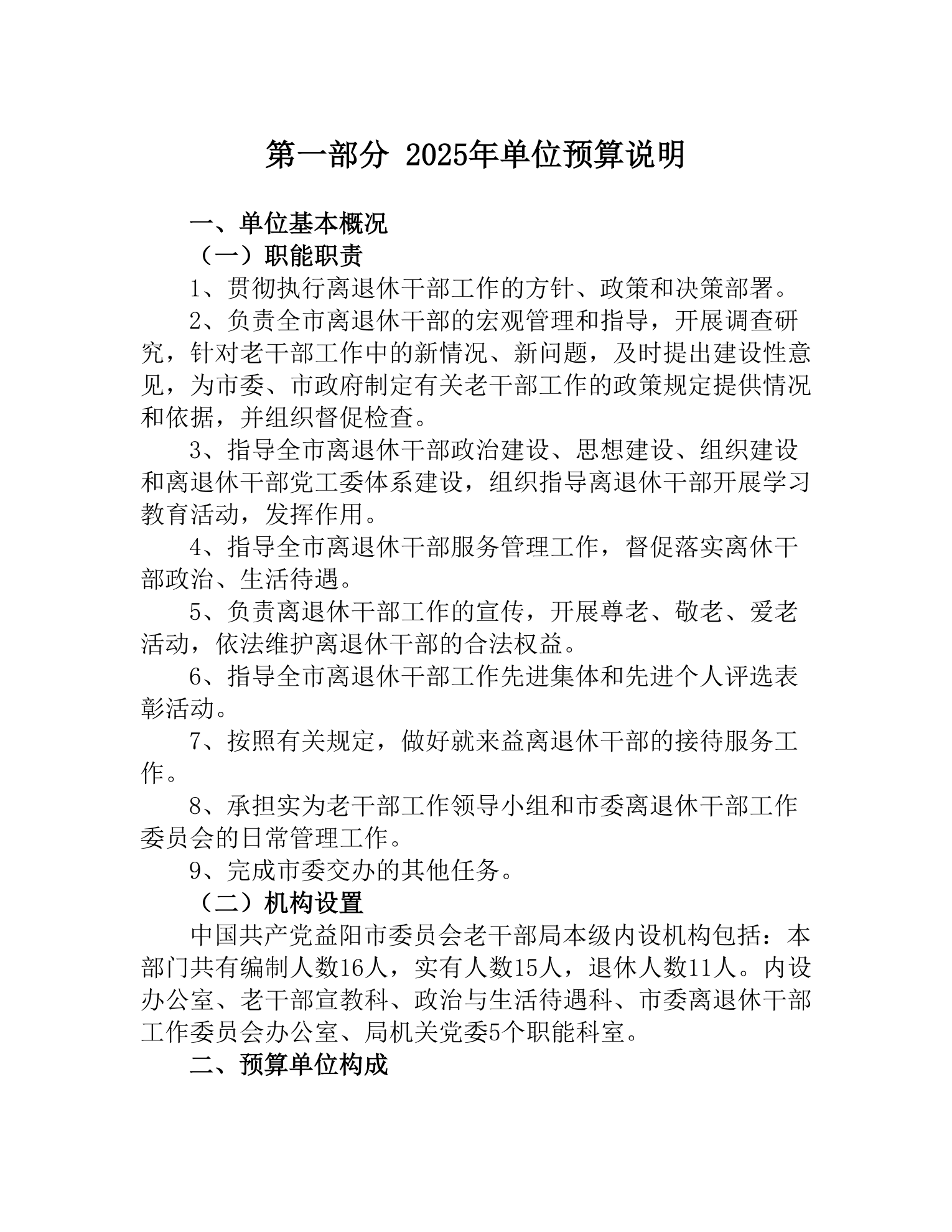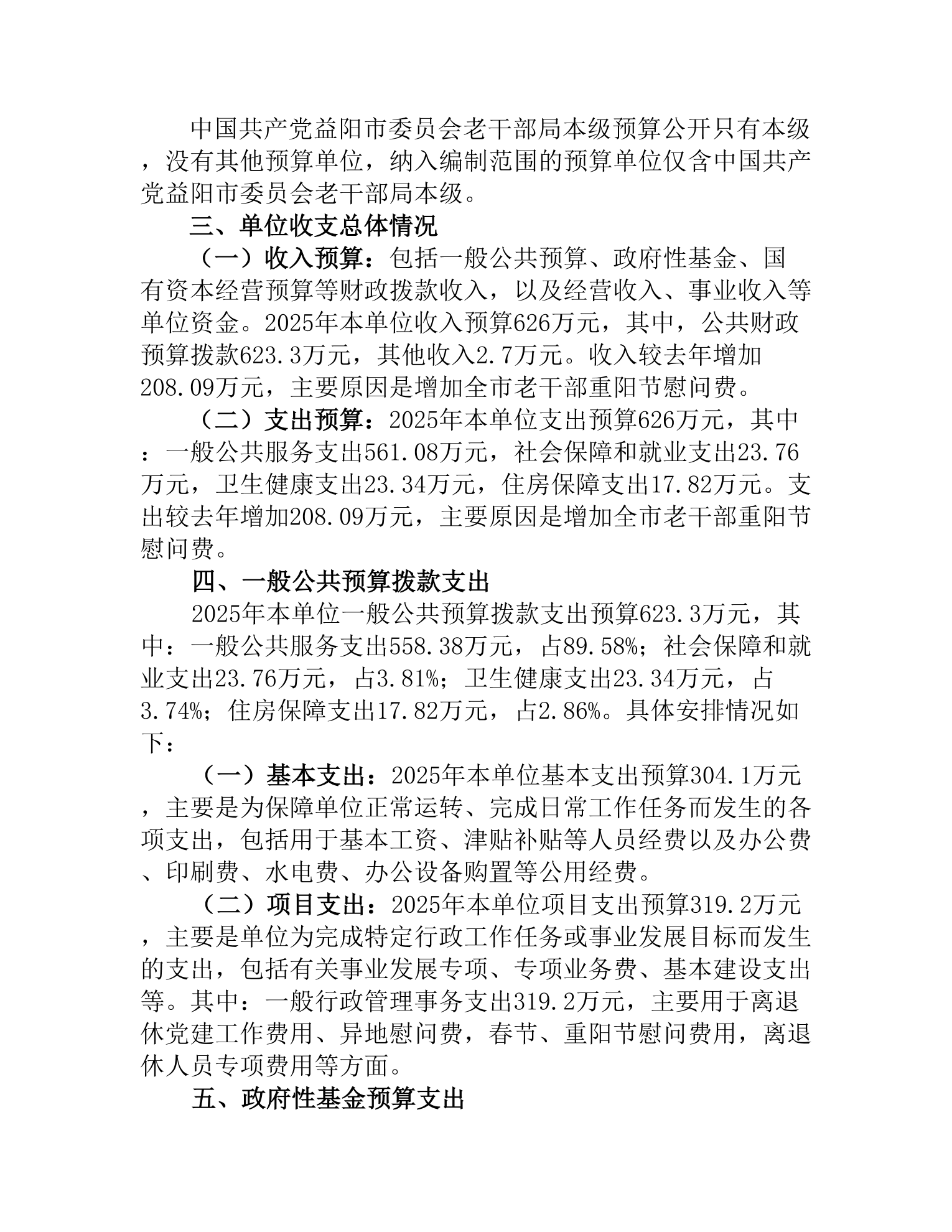 中国共产党益阳市委员会老干部局本级2025年单位预算公开说明