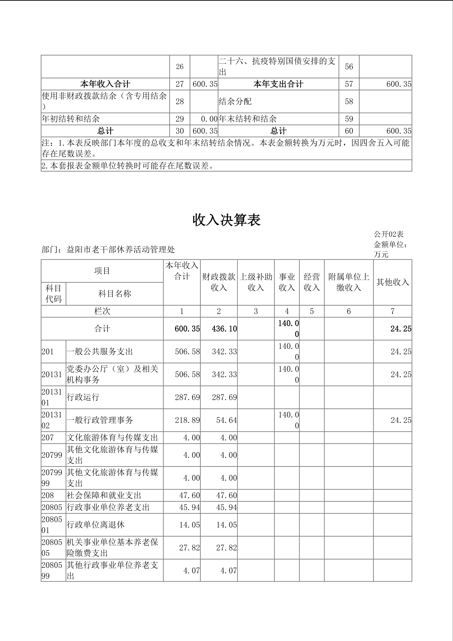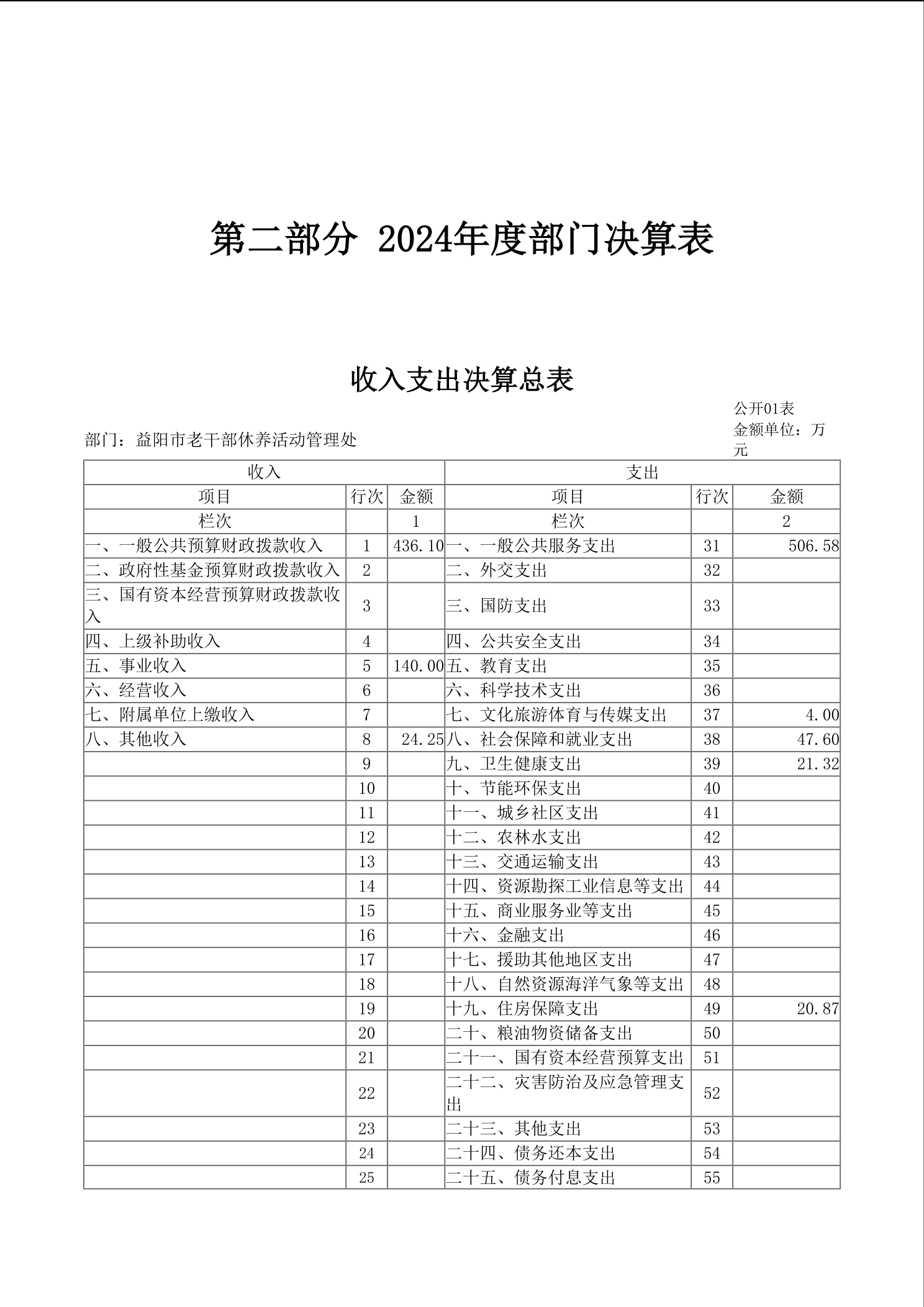 2024年度益阳市老干部休养活动管理处部门决算