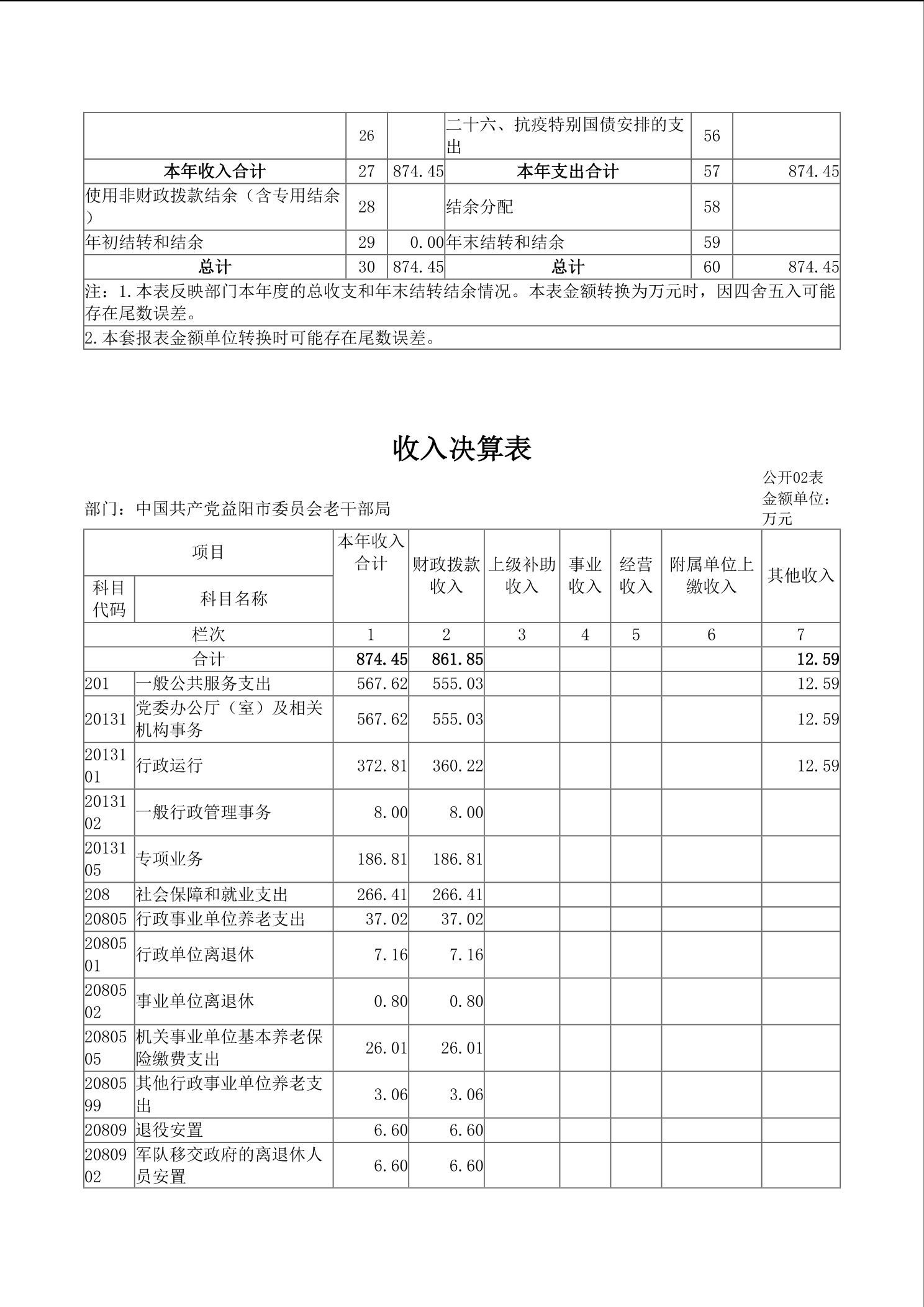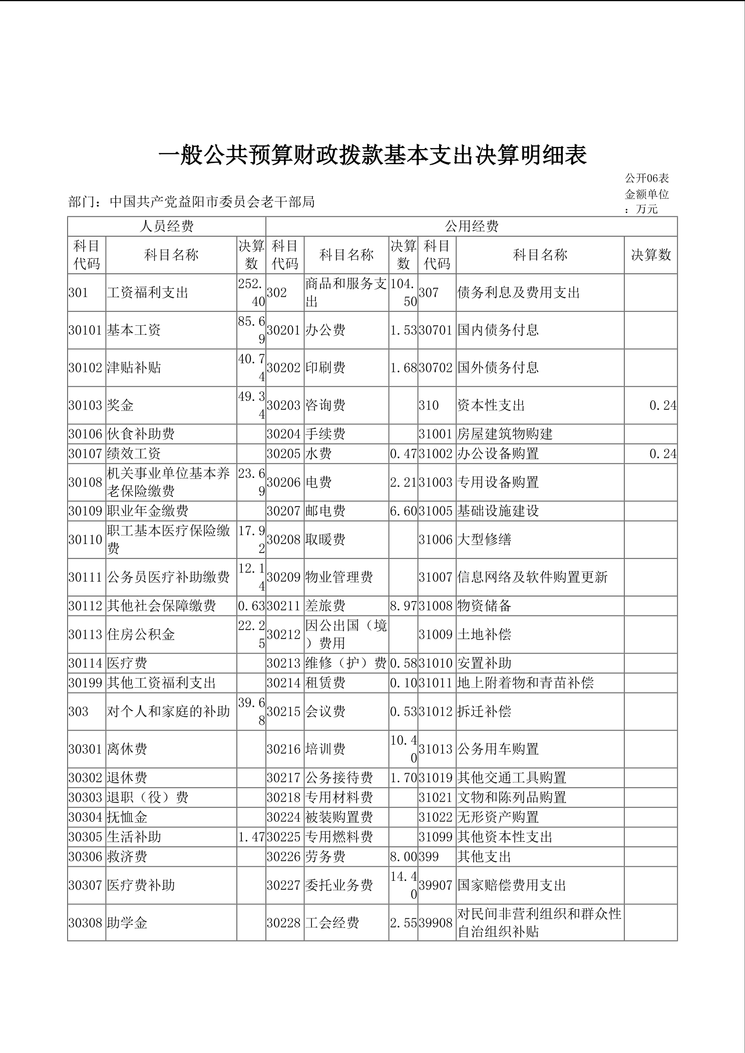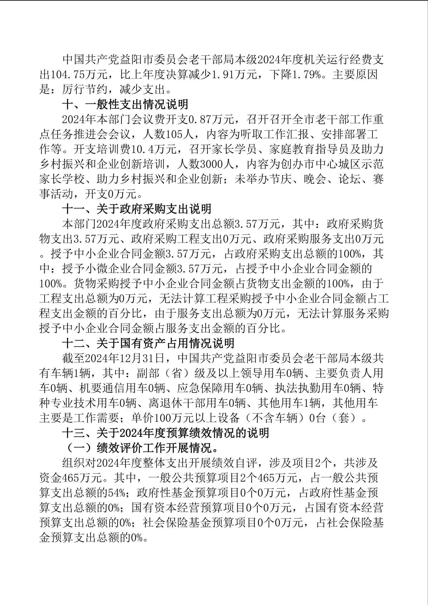 2024年度中国共产党益阳市委员会老干部局本级部门决算