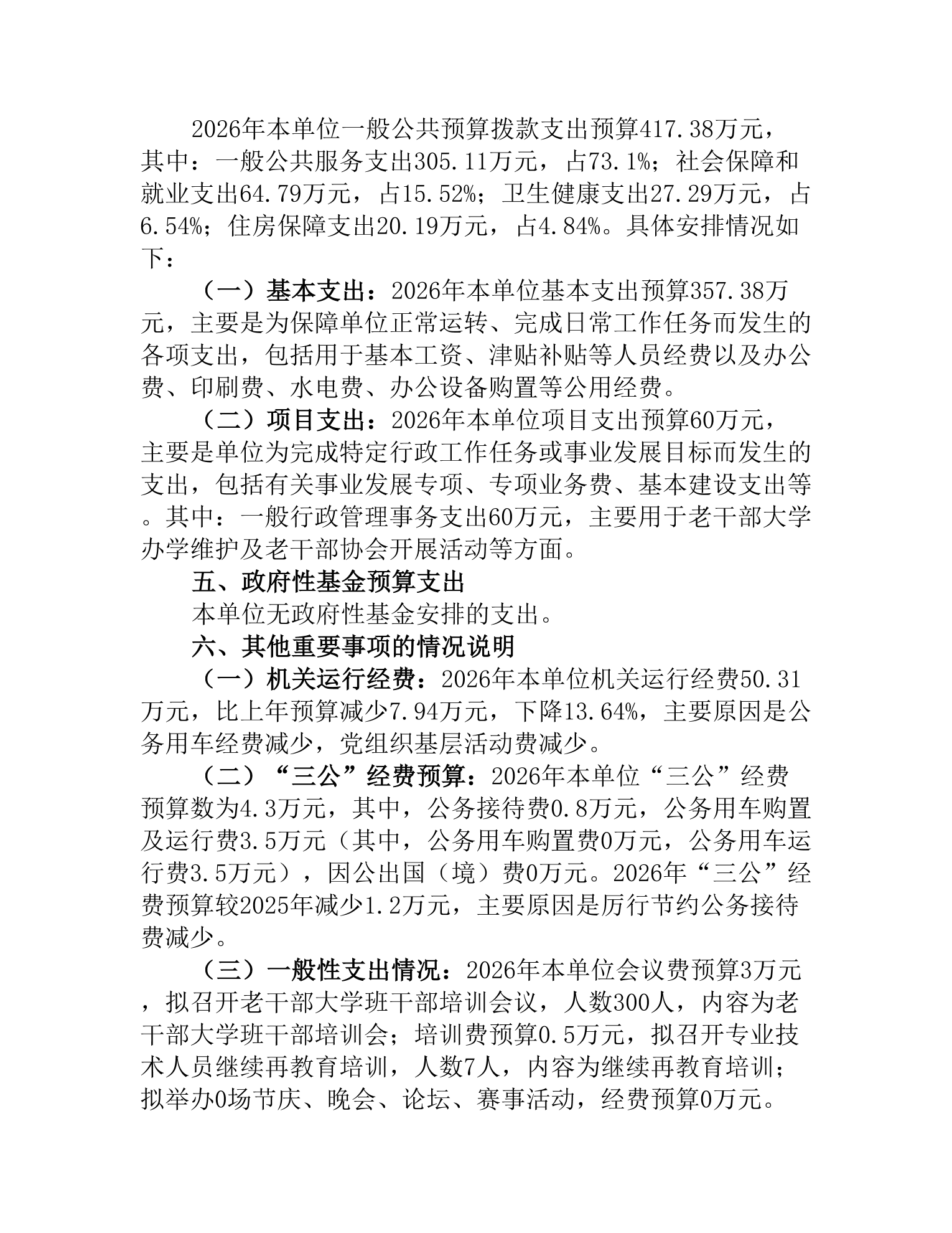 益阳市老干部休养活动管理处2026年部门预算公开说明