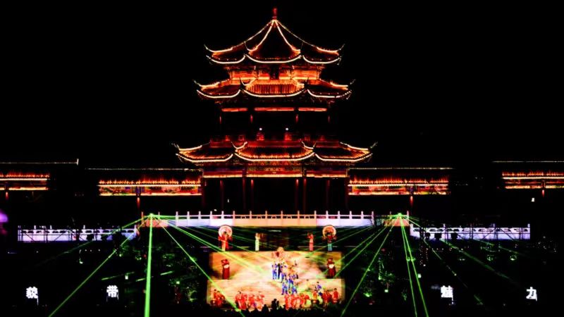 彩灯轮廓谁施布?舞者如仙下洞庭。